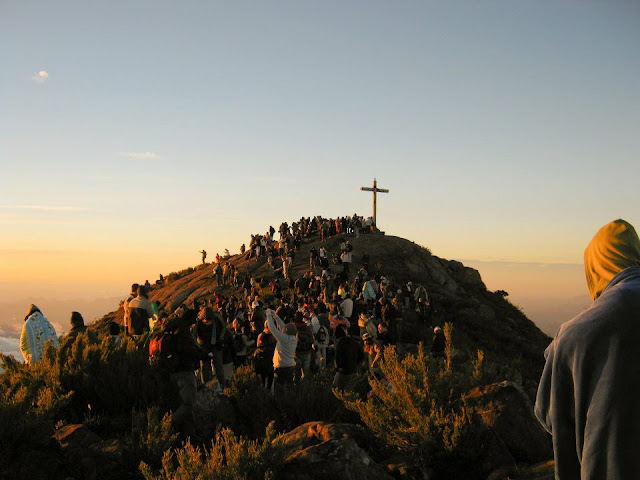 Nós chegamos ao cume antes do que tínhamos calculado e tivemos que ficar esperando o sol nascer. Graças a Deus levamos um cobertor e nos enrolamos nela para nos proteger do vento.